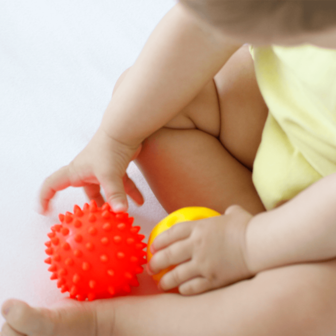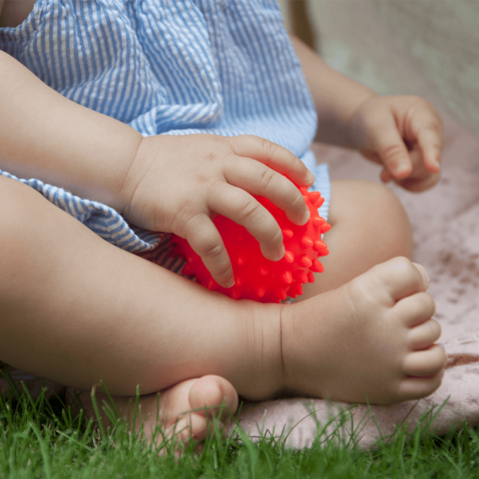 Cores vibrantes e uma textura diversa são elementos característicos das Bolas Sensoriais- Sensorky. Estas bolas sensoriais são projetadas para estimular os receptores sensoriais da criança. Bebés até aos 3 meses de idade estão em fase de perfeita adaptação à vida fora da barriga da mãe, fletindo os músculos, que podem ser relaxados com uma massagem suave com uma bola nas costas e pernas do bebé, ou mesmo em todo o corpo. Um bebé relaxado sente mais conforto, o que torna o momento de adormecer mais rápido. Entregar a bola diretamente ao bebé desenvolve os músculos das mãos. Além disso, agarrar, rolar e lançar a bola melhora as habilidades manuais do bebé e a sua coordenação entre agarrar e ver conscientemente. As bolas sensoriais são perfeitas para brincar na banheira. A hora do banho é então associada ao prazer. Além disso, as ranhuras e restantes morfologias são elementos interessantes para as crianças quando precisam apreender o mundo que os rodeia.